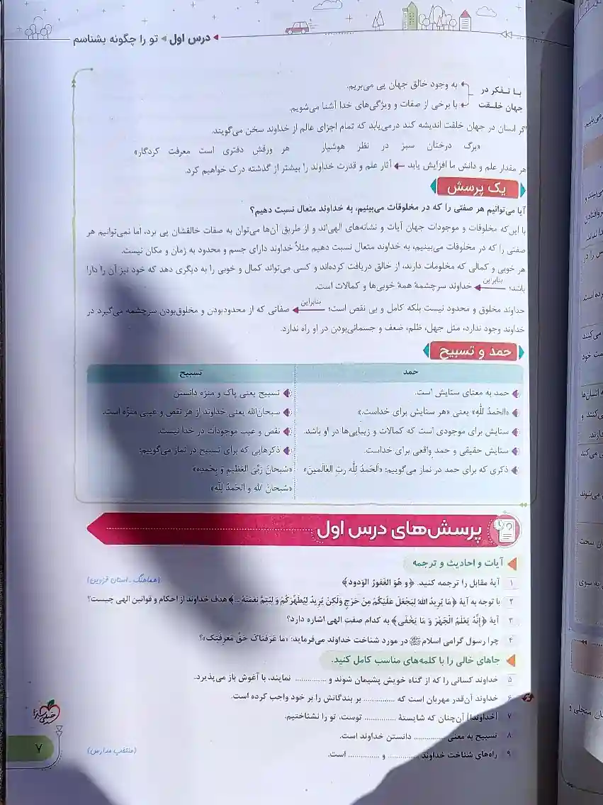 - درسنامه کامل و مفهومی: در ابتدای هر درس، مفاهیم آیات، احادیث و پیامهای کلیدی به زبانی ساده و قابلفهم توضیح داده شدهاند.