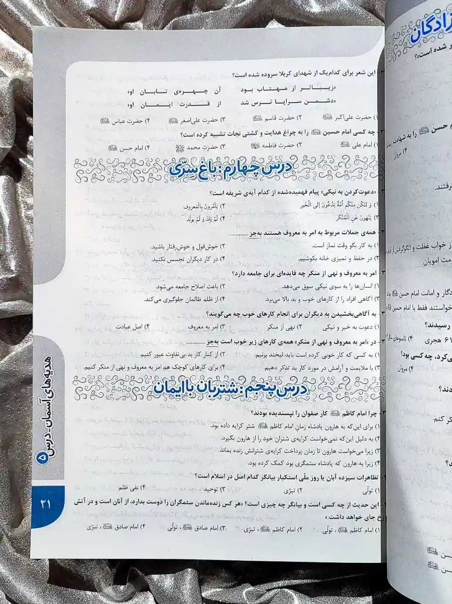 ریاضی _ فارسی _ علوم _ تفکر و پژوهش _ هدیه های آسمان و آموزش قرآن _ مطالعات اجتماعی _ استعداد تحلیلی