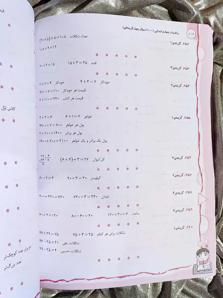 ۱۱۰۰ سوال چهار گرینه ای ریاضیات چهارم ابتدایی مبتکران
