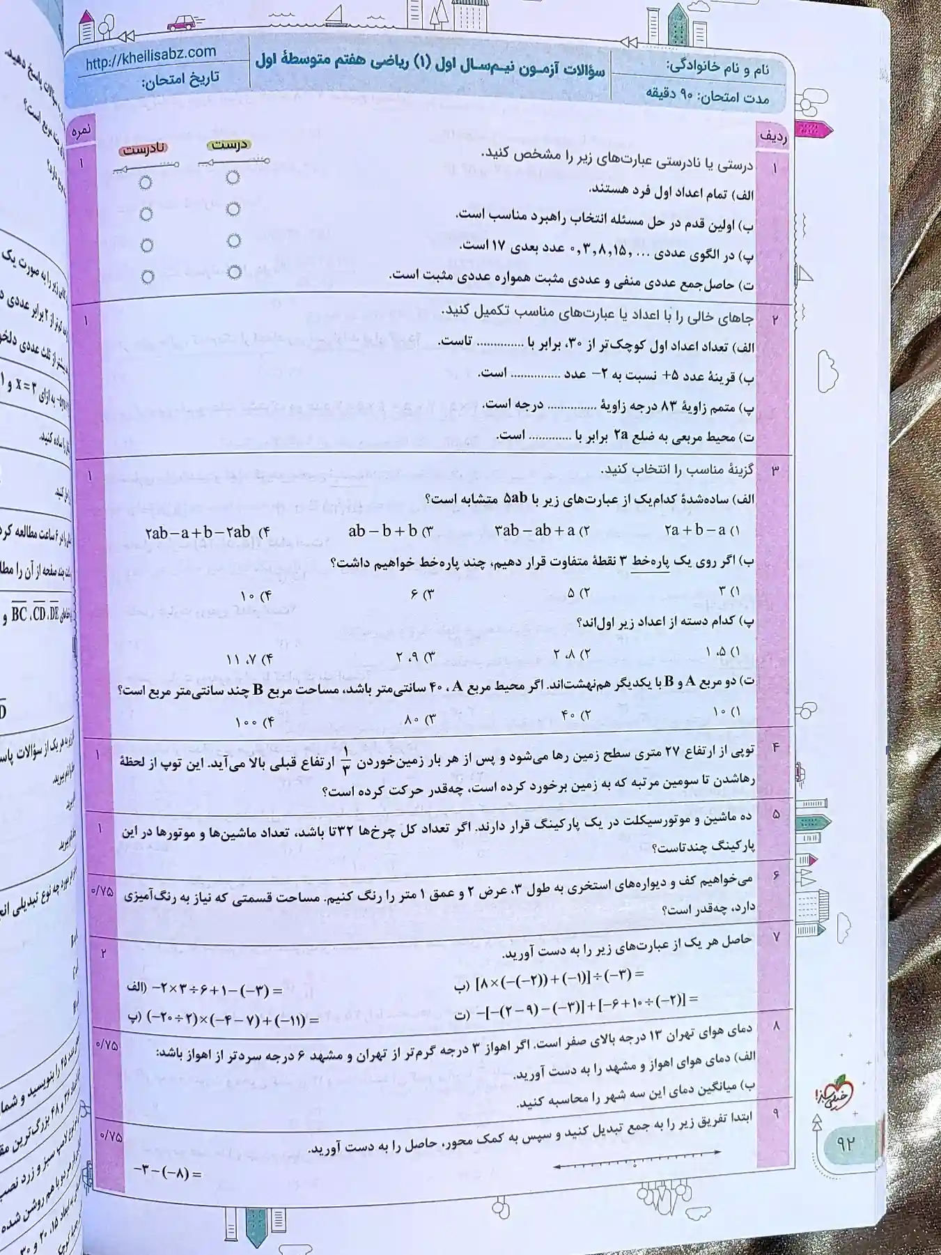 ماجرای بیست ریاضی هفتم خیلی سبز