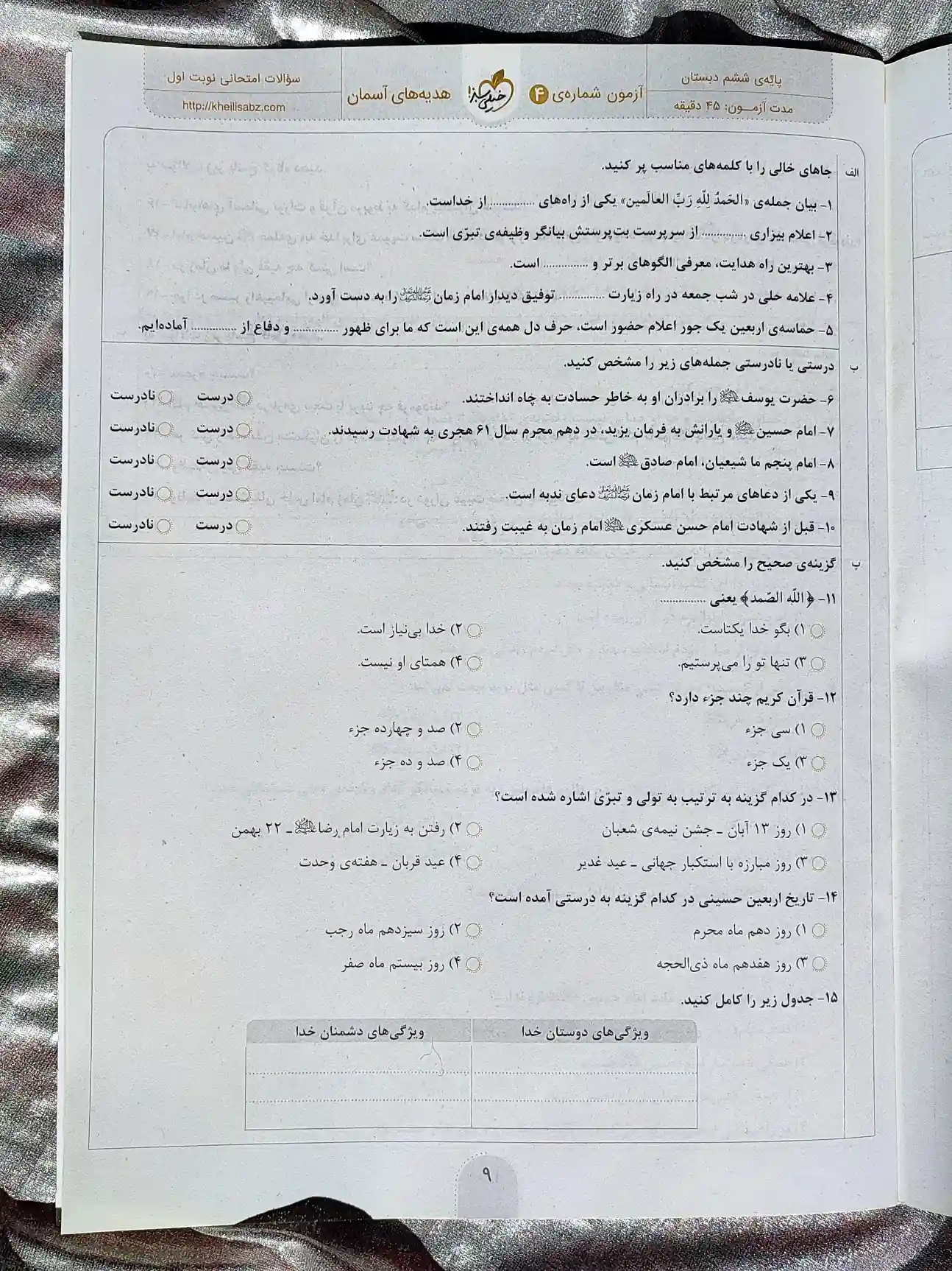 شب امتحان هدیه های اسمان ششم خیلی سبز