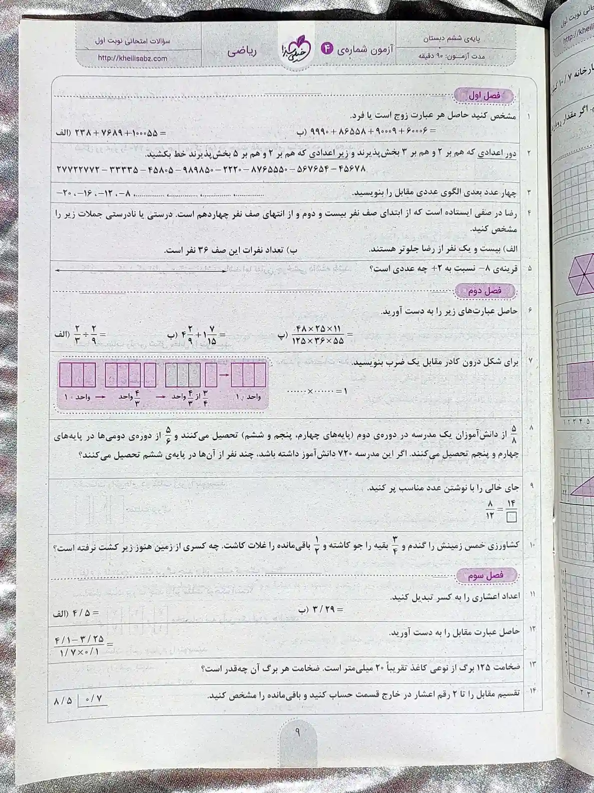 شب امتحان ریاضی ششم خیلی سبز