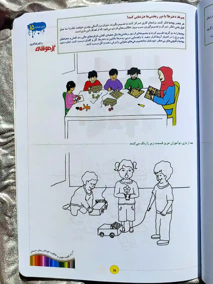 این کتاب شامل ۱۰۱ بازی و سرگرمی آموزشی متنوع است که هرکدام با هدف تقویت هوش، خلاقیت و مهارتهای ذهنی کودکان پیشدبستانی طراحی شدهاند. بسیاری از این بازیها ساده، آشنا و کمهزینه هستند، اما با نگاهی آموزشی و تحلیلی ارائه شدهاند. در این کتاب پیشدبستانی تأکید اصلی بر تأثیرات روحی، روانی و شناختی بازیهاست و تمرینها بهگونهای انتخاب شدهاند که کودک در فضایی شاد، مفاهیم پایه را بهصورت غیرمستقیم و عمیق یاد بگیرد.